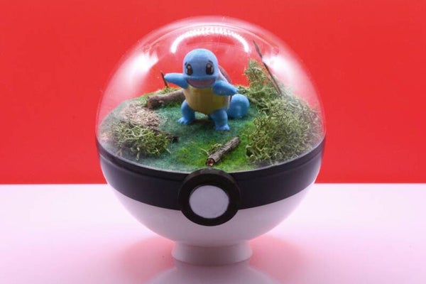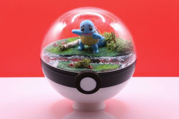 Plongez dans Pokevers avec cette PokéBall diorama mettant en scène le petit Cara, le célèbre personnage de type Eau, dans un décor naturel détaillé.