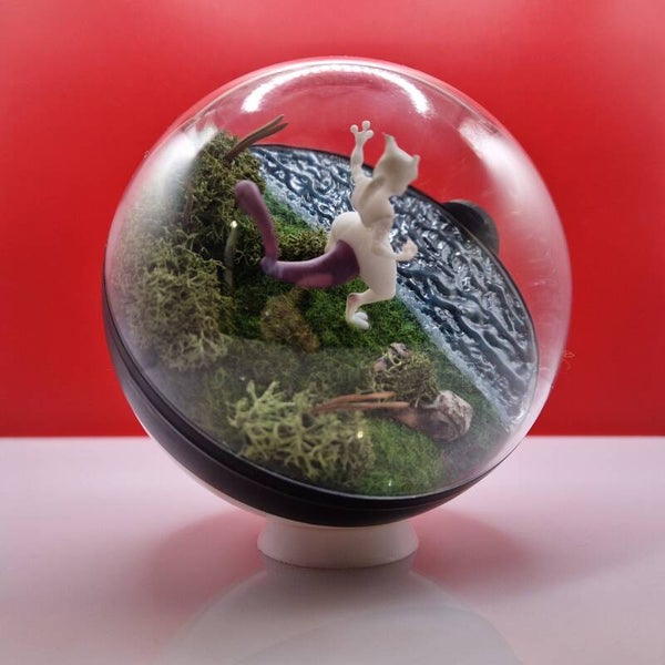 Au cœur de sa Pokeball, Mewtwo impose une présence silencieuse et intense. Immobile, concentré, il semble absorber l’espace autour de lui, comme si le décor n’était qu’une extension de sa pensée.
