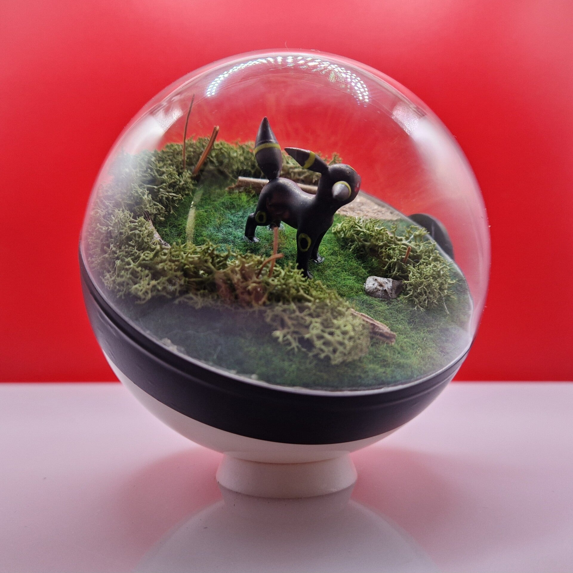 Chaque Pokeball est réalisée à la main avec un soin particulier apporté aux matières et aux textures. Le décor, subtilement équilibré, évoque la tranquillité de la nuit, tandis que l’effet d’eau, travaillé artisanalement, capte la lumière et apporte profondeur et reflets à la scène.