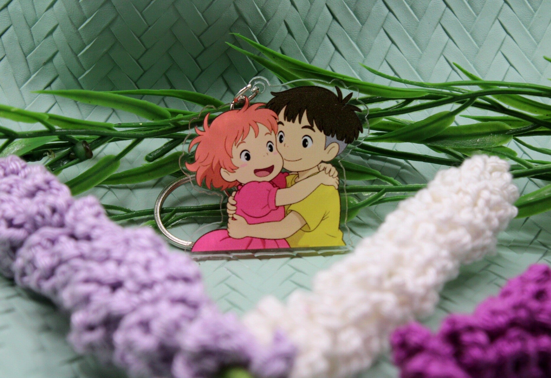 Un porte-clé en plastique représentant une petite fille espiègle au sourire tendre, rappelant l’histoire d’une enfant aquatique qui découvre le monde humain aux côtés d’un jeune garçon. Le dessin est réalisé à la main puis imprimé, et fixé à un anneau en acier. Dimensions : 4,5 cm x 4,5 cm.