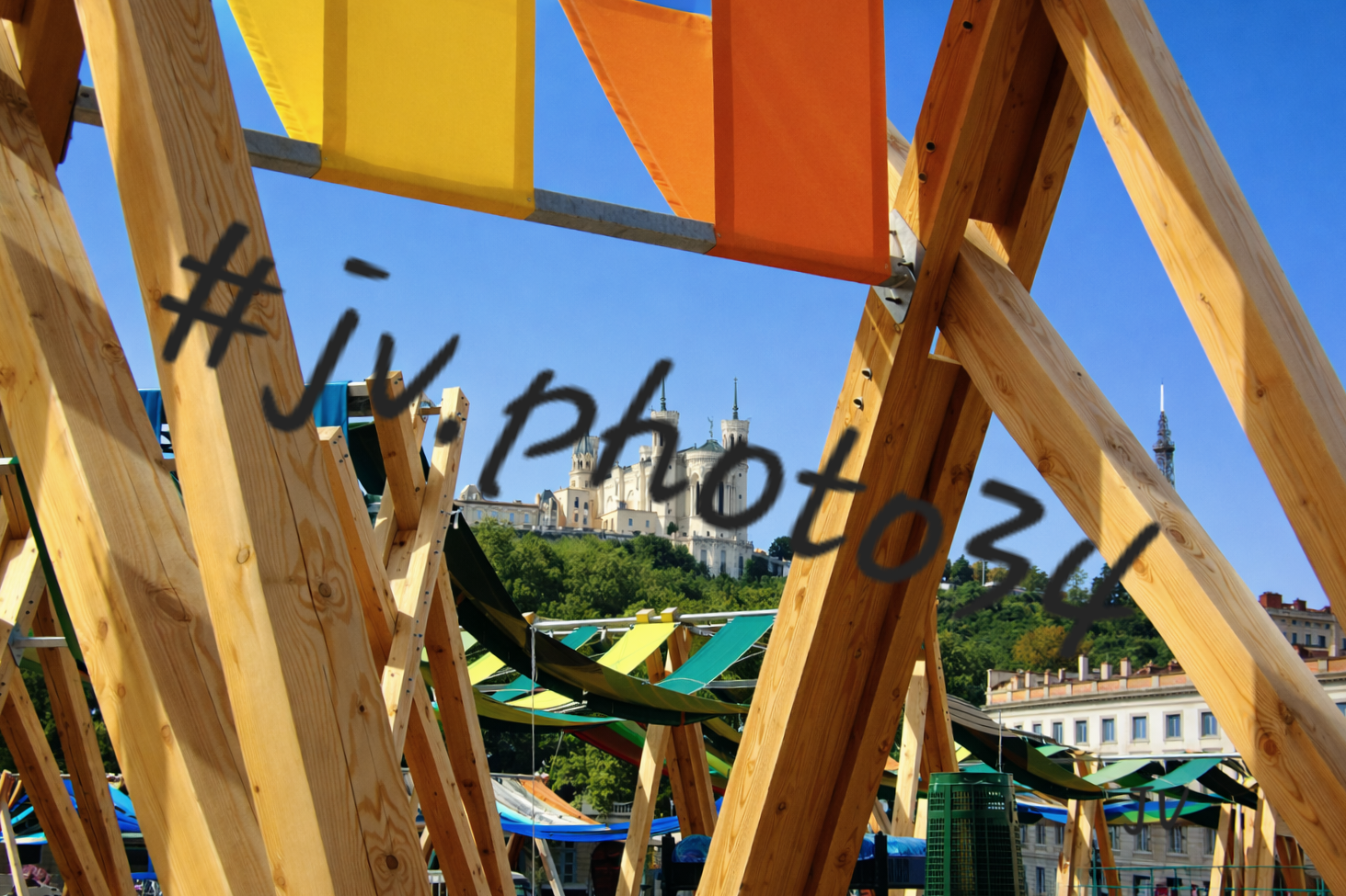 À l’arrière-plan, la colline de Fourvière s’élève doucement, dominée par sa basilique, témoin immuable de l’histoire lyonnaise.